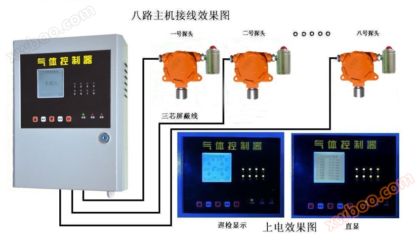 Bộ điều khiển báo động khí thông minh: Loại QD6000Giám sát đa điểm Bộ điều khiển phát hiện khí dễ cháy, được sử dụng để phát hiện nội dung trong giới hạn dưới của vụ nổ khí dễ cháy hoặc hơi lỏng trong không khí, có thể mang theo nhiều đầu dò phát hiện, đồng thời kiểm soát tập trung nhiều điểm. Hệ thống này sử dụng bộ vi xử lý làm bộ phận điều khiển và bộ phận nhạy khí xúc tác hiệu suất cao làm cảm biến phát hiện, độ nhạy cao và tốc độ phản hồi nhanh. Khi nồng độ khí dễ cháy trong môi trường đạt hoặc vượt quá giá trị báo động đặt trước, bộ điều khiển ngay lập tức phát ra báo động âm thanh và ánh sáng, và điều khiển luồng gió hoặc các hành động thiết bị bên ngoài khác để ngăn chặn vụ nổ, tai nạn hỏa hoạn, do đó đảm bảo cuộc sống, hệ thống này có thể được sử dụng rộng rãi trong các nhà máy, kho dầu, trạm khí hóa lỏng, trạm gas, trạm xăng, phòng phun sơn và những nơi cần phòng cháy nổ để báo động phát hiện an toàn.